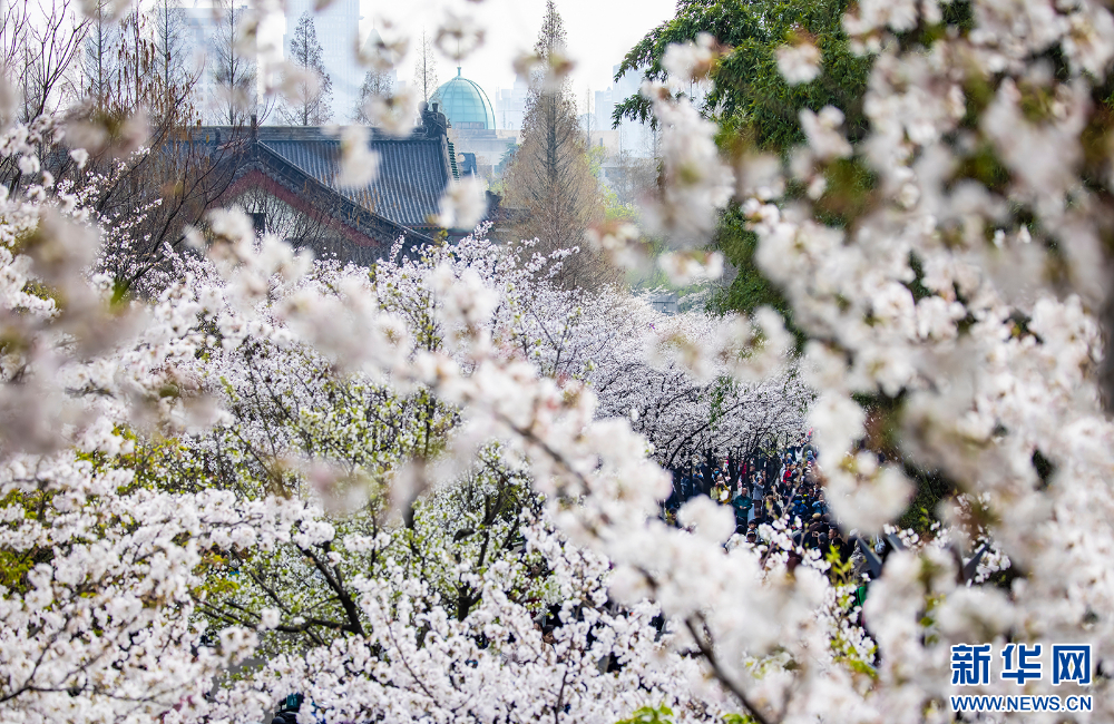 鸡鸣寺樱花是南京春日“限定”的动人景致。这几天,鸡鸣寺樱花进入盛开期,粉色的花海和古色古香的建筑交相辉映,勾勒出一幅美丽的画卷,吸引众多游人前来打卡。(沙芳如 报道员:刘伟)
