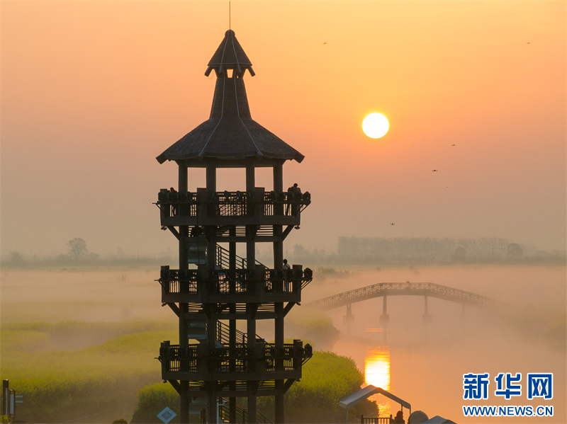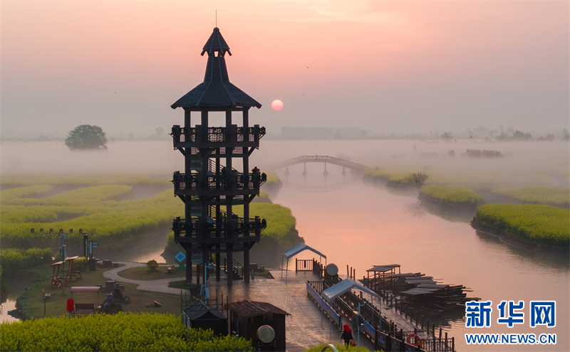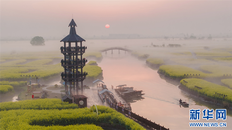 苏南早报讯 近日,兴化市千垛菜花景区迎来盛花期。在晨雾缭绕中,景观若隐若现,呈现一派山水画意境。(沙佳仪 报道员:周社根)