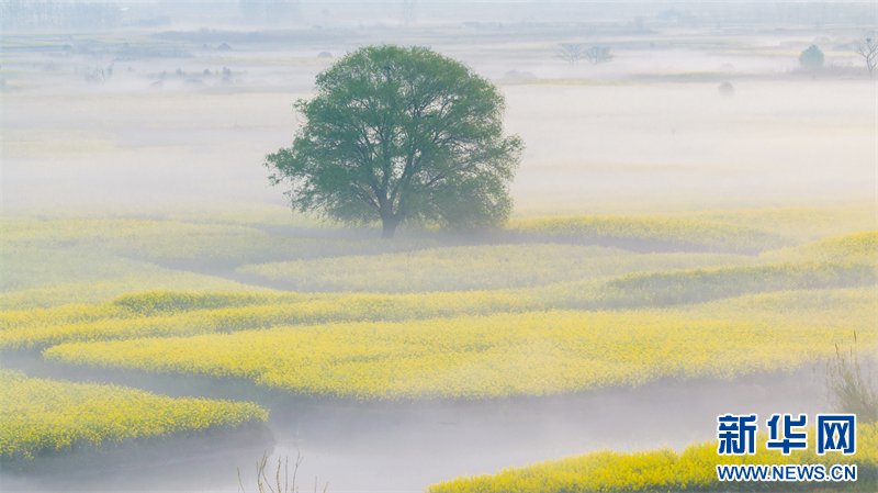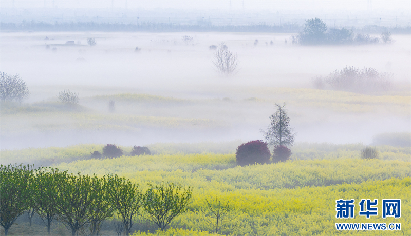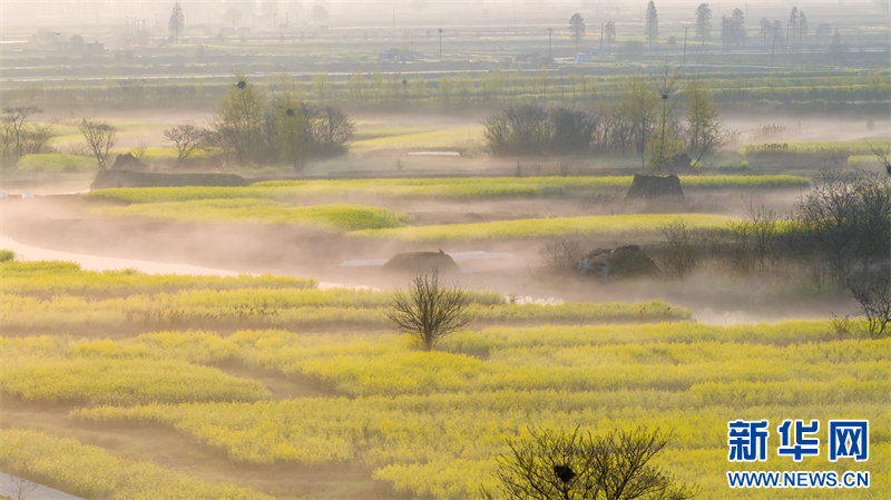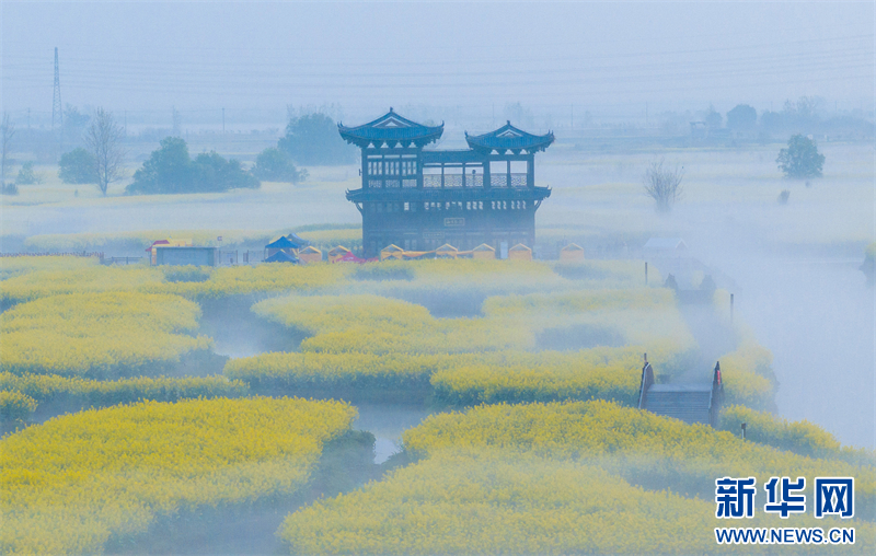 江苏兴化:雾绕千垛油菜花海 美如仙境