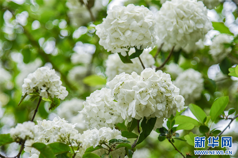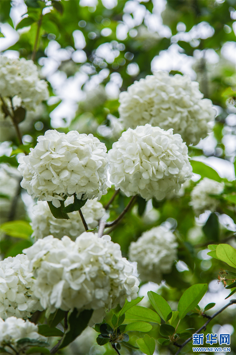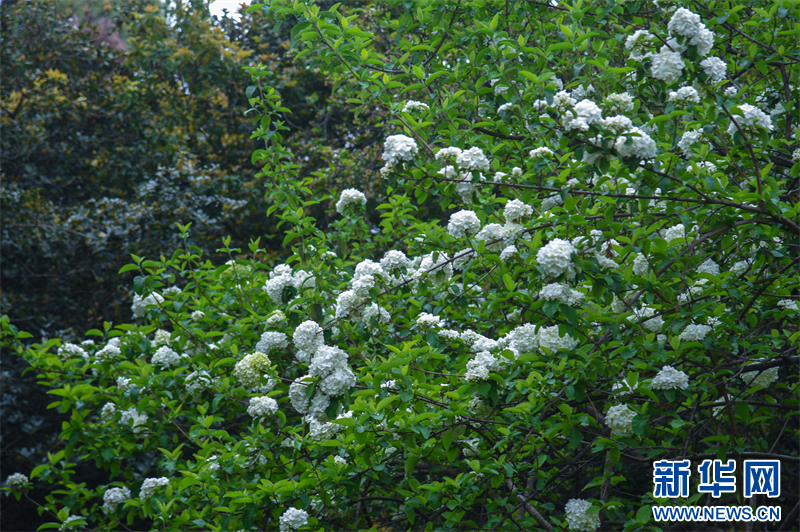 芳菲四月,又到了木绣球盛开的时节。近日,在南京莫愁湖景区内,抱月长廊旁的木绣球已经呈盛开之势,摇曳着满树繁花,犹如积雪压枝,极尽春之美事。(沙佳仪 素材来源:南京莫愁湖景区)