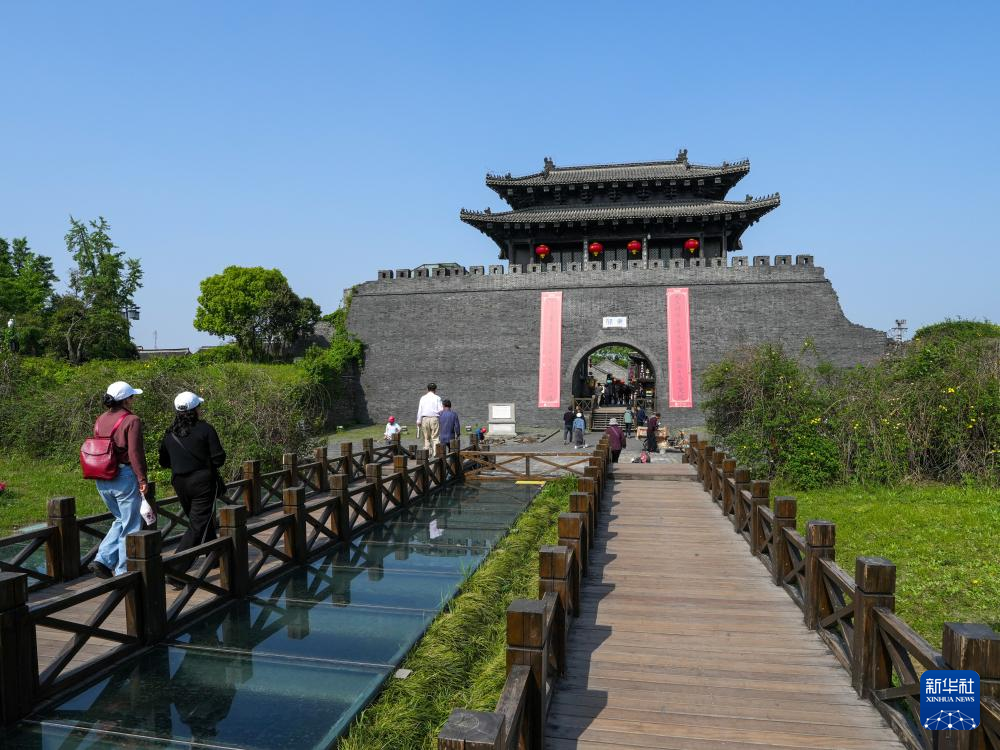 4月22日,游客在扬州东关街东门城楼休闲游玩。新华社记者 李博 摄