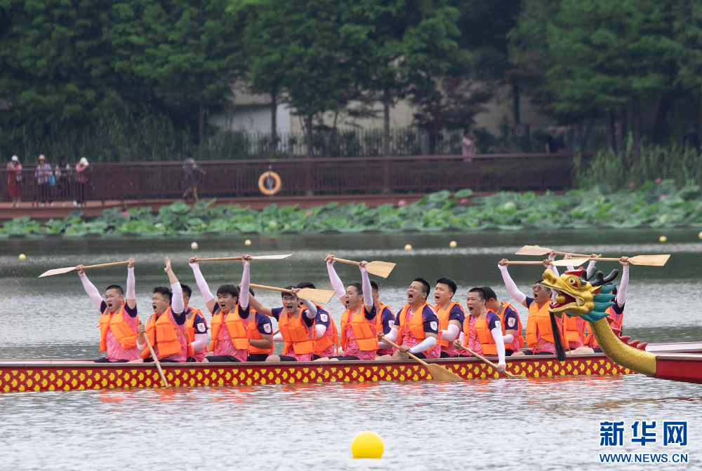 苏南早报讯 赛龙舟是端午节重要的民俗活动之一。近日,南京莫愁湖举办龙舟比赛,参赛队伍在湖面上激烈比拼,岸边人头攒动,热闹非凡,展现中国传统文化的魅力。(沙芳如 报道员:刘伟)