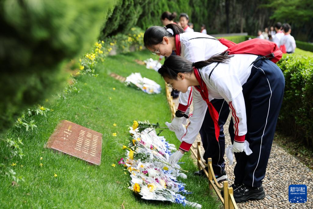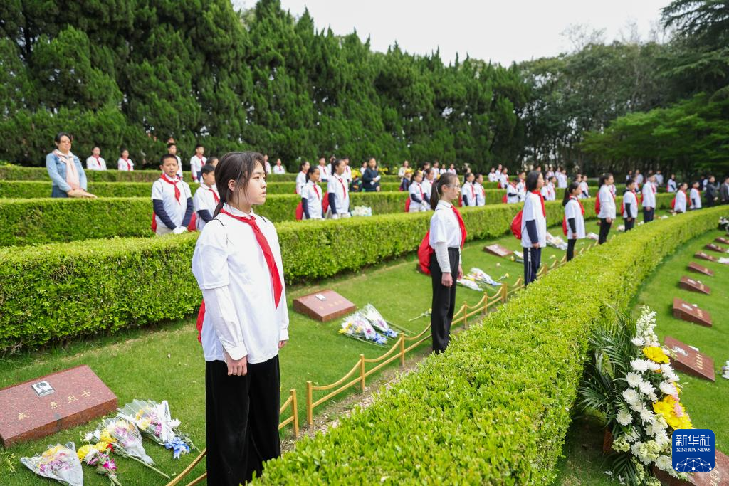 4月4日,少先队员在上海龙华烈士陵园烈士墓碑区域献花。 清明时节,全国各界人士以多种形式开展祭扫活动,缅怀英烈、铭记历史。 新华社记者 王翔 摄 4月4日,少先队员在上海龙华烈士陵园无名烈士墓前献唱《我们是共产主义接班人》。 清明时节,全国各地以多种形式开展祭扫活动,缅怀英烈、铭记历史。 新华社记者 王翔 摄 4月4日,人们在上海龙华烈士陵园烈士墓碑区域进行纪念活动。 清明时节,全国各地以多种形式开展祭扫活动,缅怀英烈、铭记历史。 新华社记者 王翔 摄