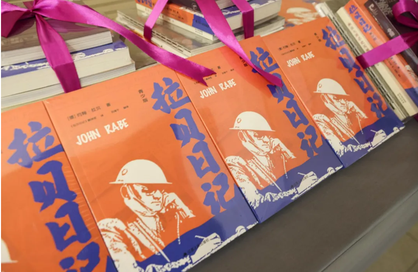 在活动中,南京外国语学校高中生陈沁玄,历史记忆传承人、南京大屠杀幸存者阮定东之孙阮杰,纪念馆教育专员陈思,南京传媒学院大学生晏子豪和紫金草志愿者李国荣为大家接力朗读《拉贝日记》(青少版)选段,并分享阅读心声。《拉贝日记》(青少版)在1997年《拉贝日记》单行本的基础上,进行了文字编译与形式创新,增添了许多珍贵的历史图片和拉贝手绘图,延伸了注释及译者导读,更适于、便于青少年阅读。